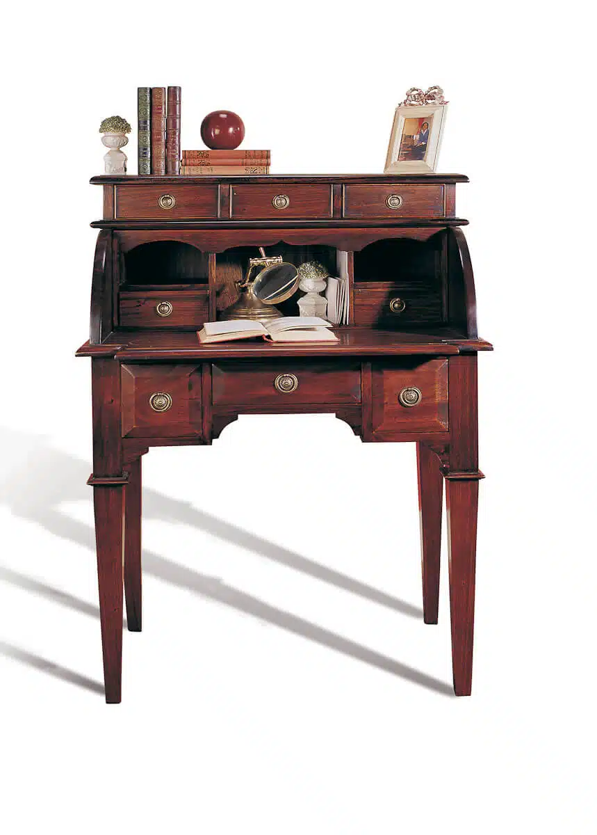 Resulta muy práctico porque cuenta con cajones, que aunque son pequeños permiten guardar desde bolis, hasta facturas… Esta fabricado con madera de caoba maciza y de forma artesanal. Dará un toque vintage si la estancia en la que lo coloquéis está amueblada de forma más moderna.