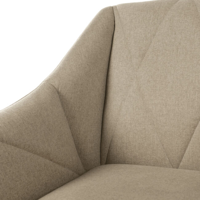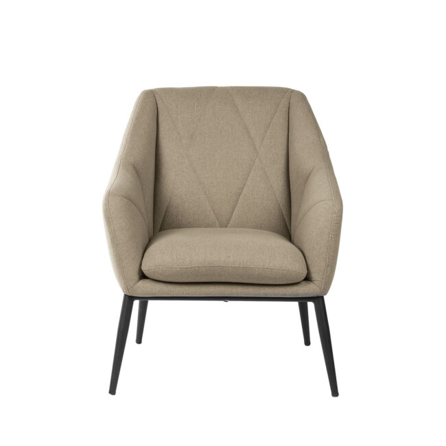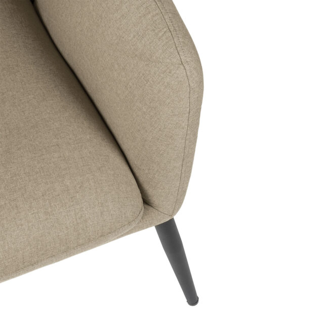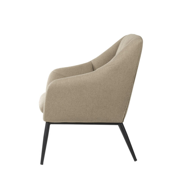 Butaca tapizada en color beige con patas ligeramente inclinadas en metal acabado en color negro mate.