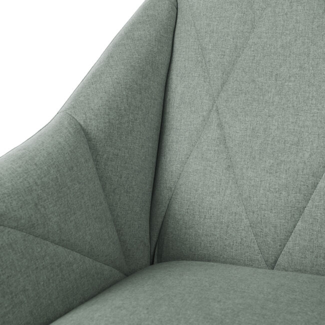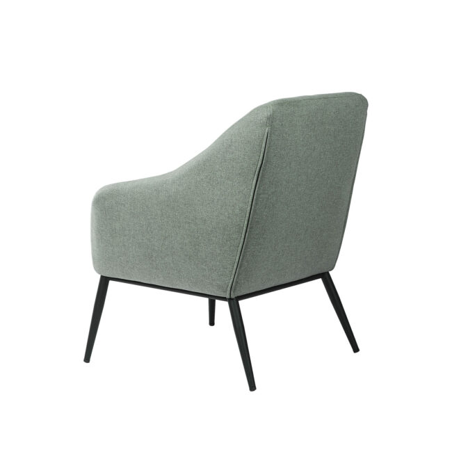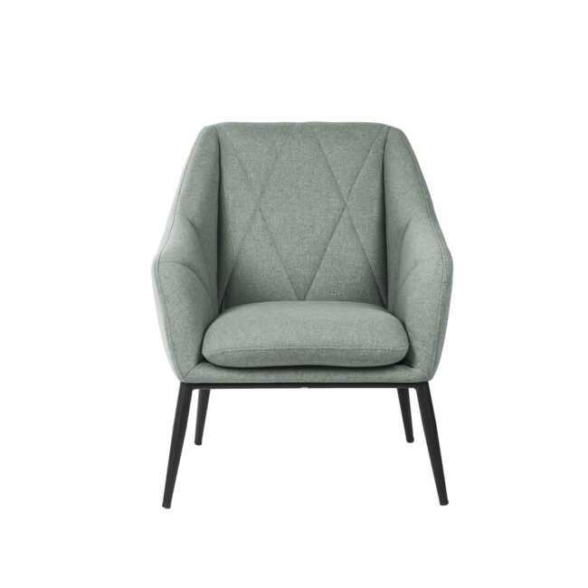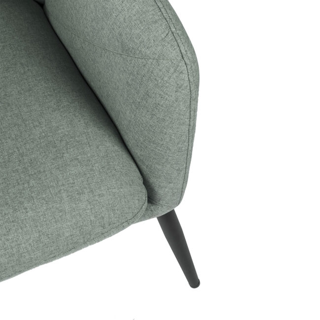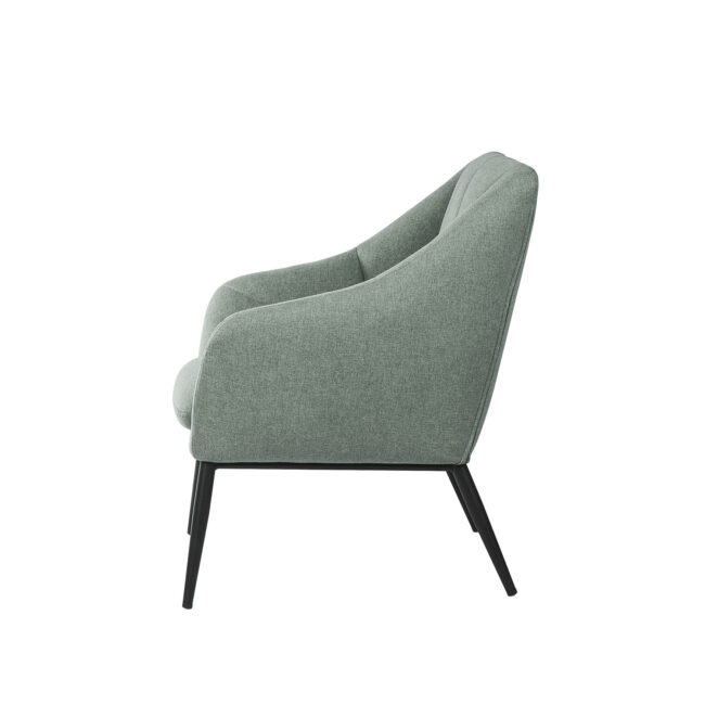Butaca tapizada en color menta con patas ligeramente inclinadas en metal acabado en color negro mate.