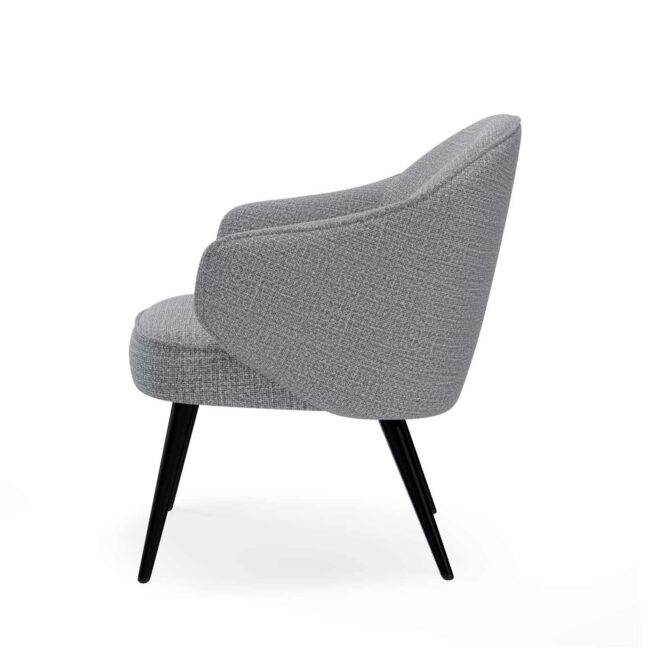 La butaca MACAO destaca por su diseño curvilíneo y envolvente, convirtiéndola en una excelente elección para ambientes modernos y acogedores.