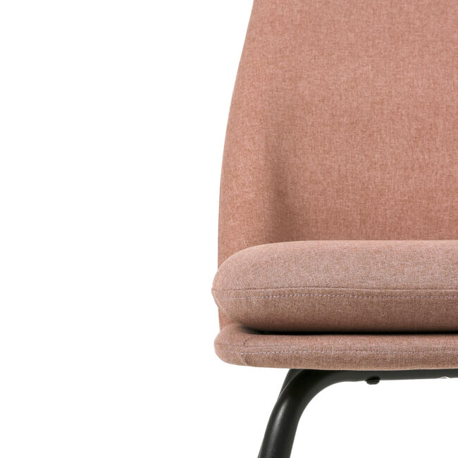 Butaca tapizada en color rose con patas ligeramente inclinadas en metal acabado en color negro.