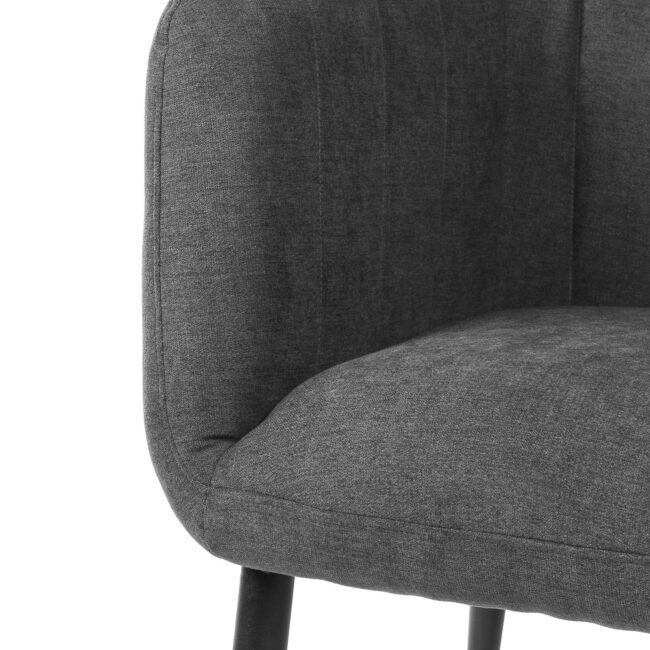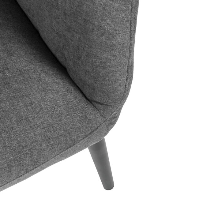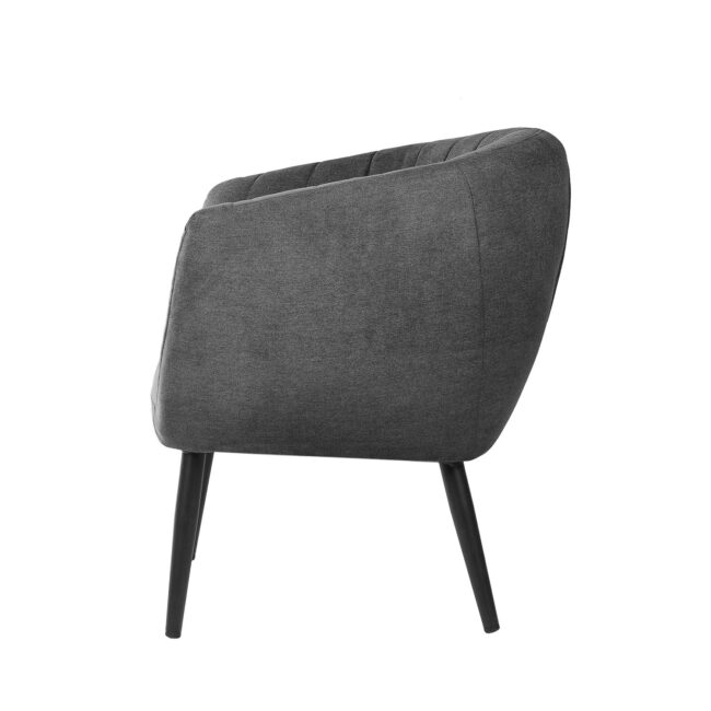Butaca tapizada en color gris oscuro con patas de metal acabado en color negro.