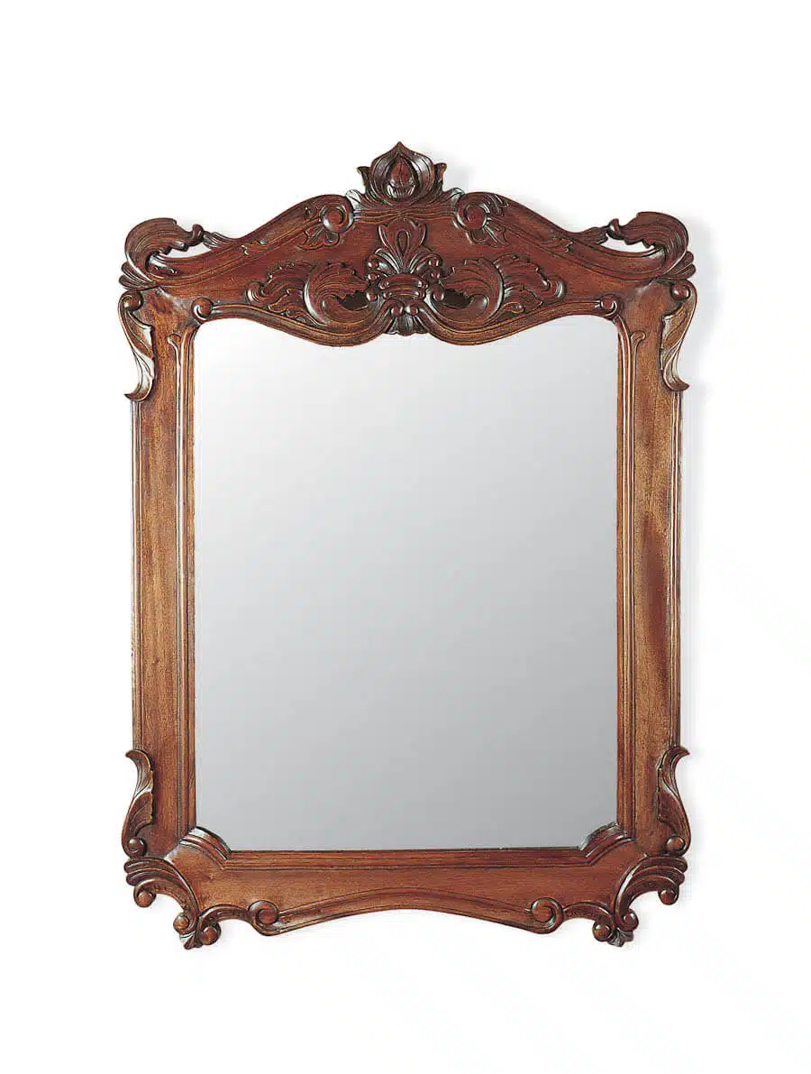 El espejo modelo «St» es una verdadera obra de arte que combina la artesanía tradicional con un diseño atemporal. Su marco rectangular está tallado a mano en caoba maciza por nuestros maestros artesanos, quienes han heredado una tradición de generaciones y son expertos en su oficio. Cada detalle de este espejo ha sido cuidadosamente trabajado para garantizar la más alta calidad y un resultado excepcional.