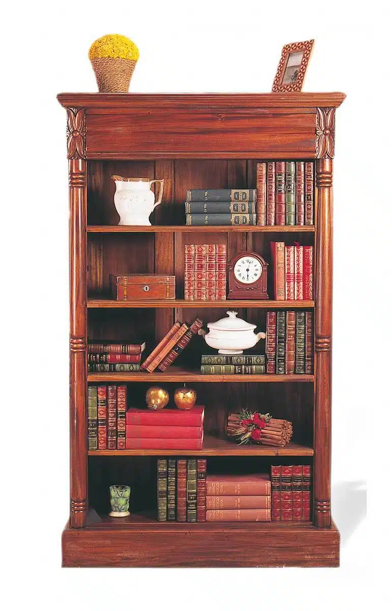 La librería que hemos escogido pertenece a la colección de Keen Replicas, y está fabricada con la mejor madera de caoba. Al contar con cinco baldas, es ideal si además de libros queremos poner en alguna de ellas cualquier objeto decorativo.