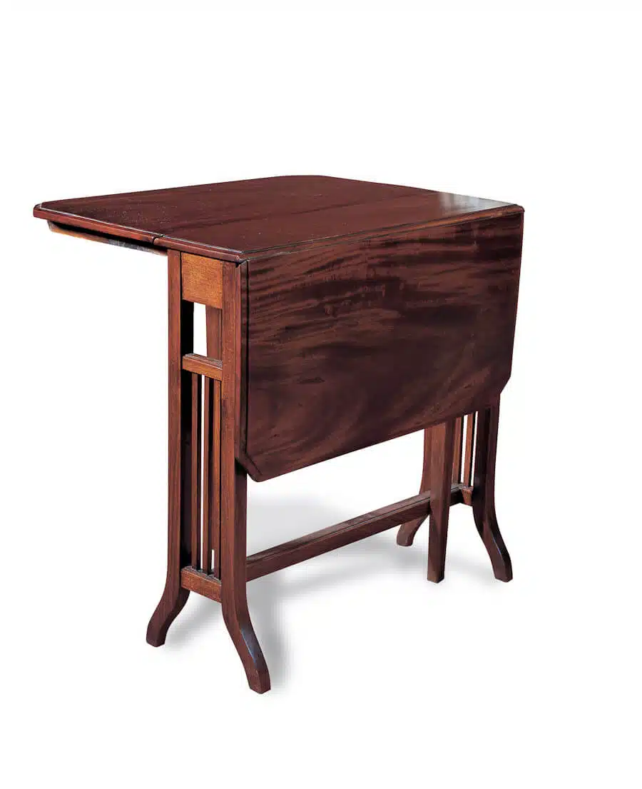 Mesa auxiliar con apertura de alas. Realizada artesanalmente en madera de caoba maciza.