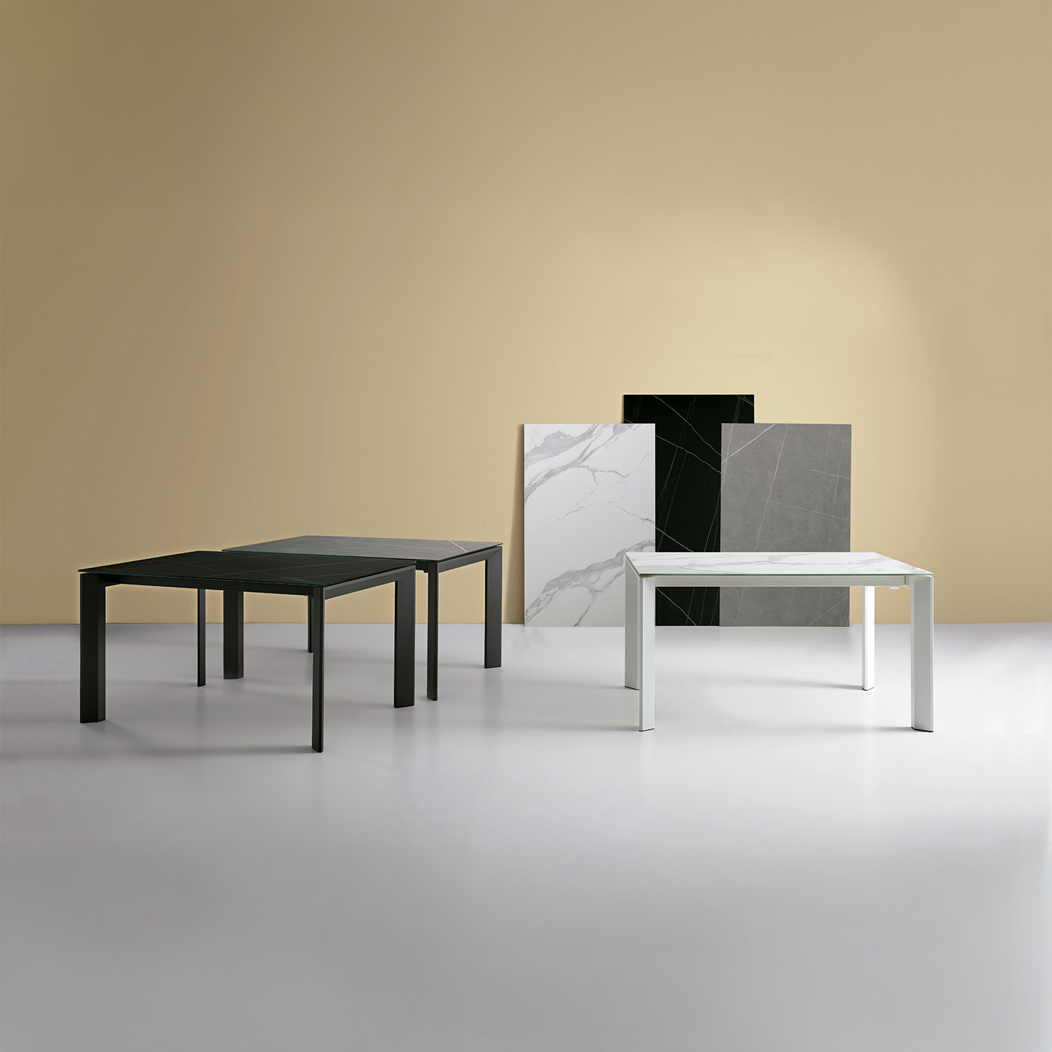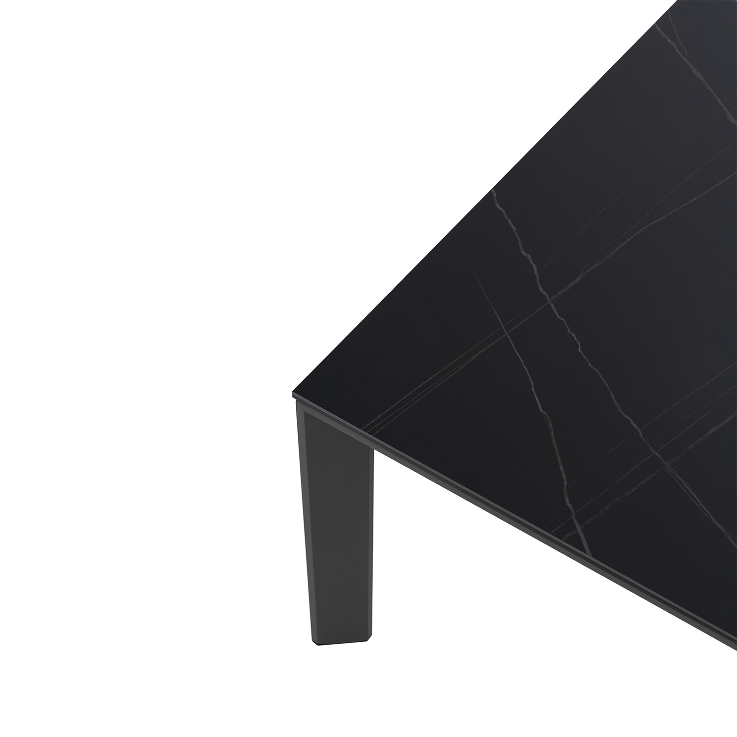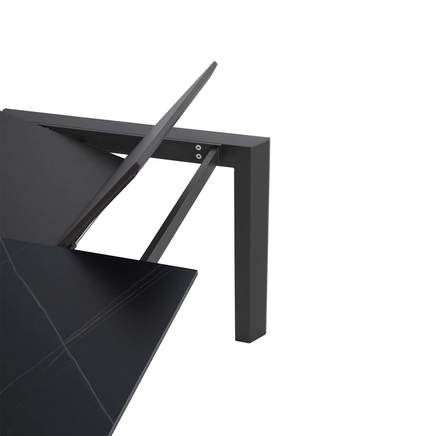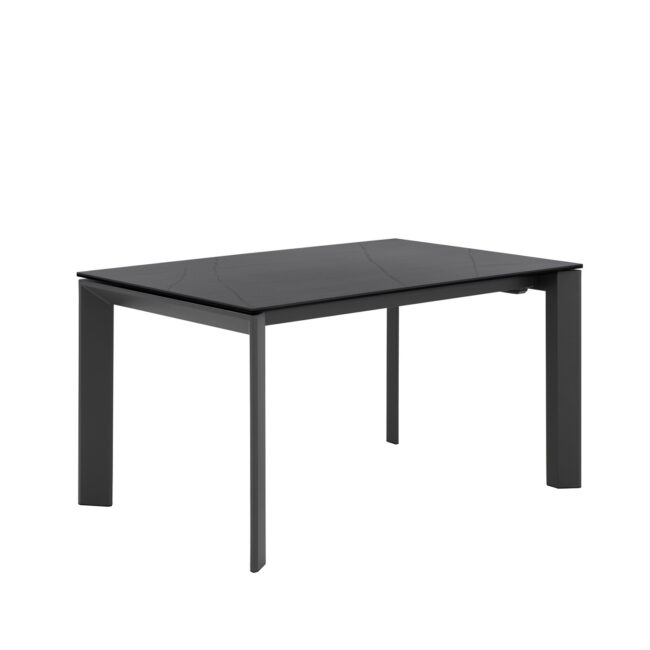 Mesa extensible de acero en color antracita y tapa porcelánico negro sahara (porcelánico 5mm + cristal templado 8mm).