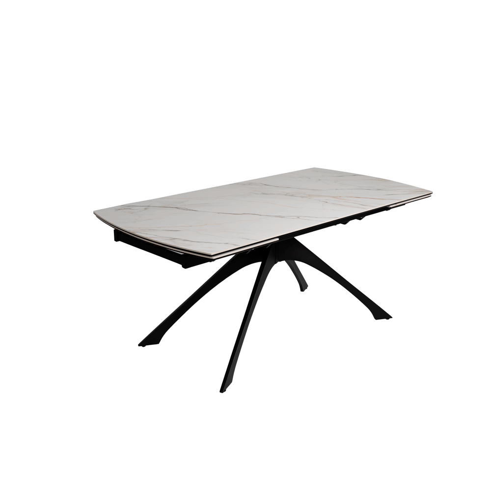 Material: cerámica 6mm imitación mármol – cristal 6mm – hierro. Mesa extensible, de 180cm a 260cm (+80cm). Precisa montaje. Distancia entre patas: 65 – 113cm.