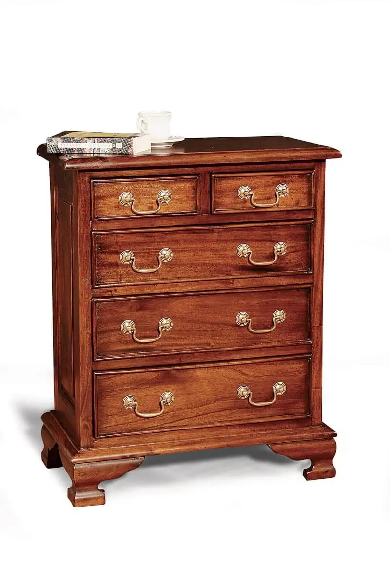 El Mini Chiffonier es un mueble de caoba maciza que es perfecto para usar como mesa de noche o para mantener pequeños objetos bien organizados. Con sus cajones espaciosos y su diseño elegante, este es un mueble ideal para cualquiera que busque una solución de almacenamiento elegante y funcional.